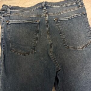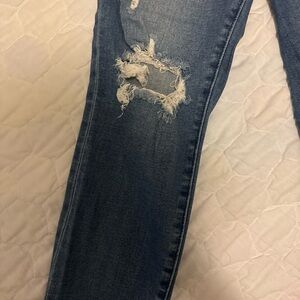 abercrombie light wash super skinny high rise ankle jeans. distressed, stretch denim.