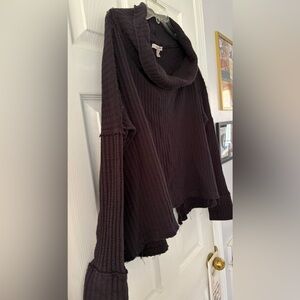 Chic black cowl neck sweater by Free People. Features a textured design. Ideal for layering and adding style. Open back. One tiny hole in the back as pictured. Easy fix, not noticeable when wearing.