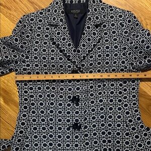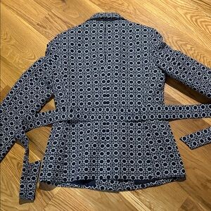Women’s Kasper 3-button belted suit coat, size 6. Navy and white, fully lined. Like new condition.