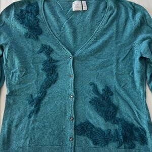 J Jill Delight in the Details Teal Embroidered Cardigan Sweater