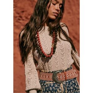 SEZANE Neutral Beige Crochet Knit Sweater w/ Balloon Sleeves & Braided Details