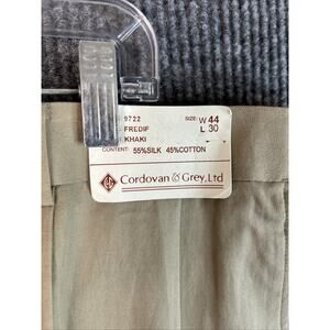 Cordovan & Grey Mens Pleated Dress Pants Sz 44 Khaki Silk Blend Preppy Business
