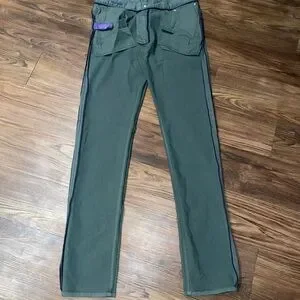 Slim-fit, sage green trousers by Ralph Lauren’s luxury Purple Label. Stretch denim with zip fly, tailored hem and cuff.
