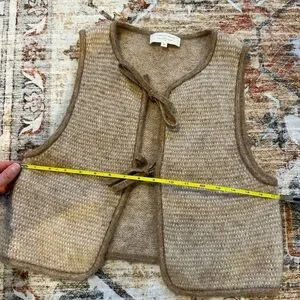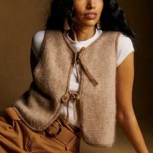 Sezane Pepy Tie Cardigan Vest XS Mottled Beige