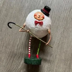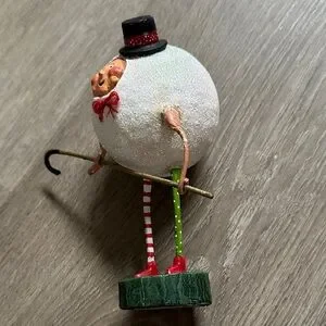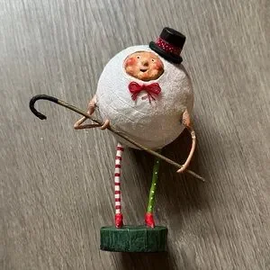 Whimsical Lori C. Mitchell Holiday Snowman with Red and Green Stripes