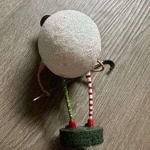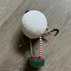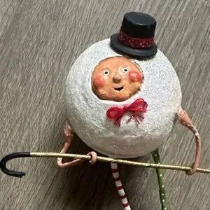 Bring joy to your holiday decor with this whimsical snowman. Featuring vibrant red and green stripes and a charming black hat, it's a delightful addition to any festive setting. It is more of a snowball man :) signs of wear in tear as shown in photos but still super cute and in pretty good condition.
