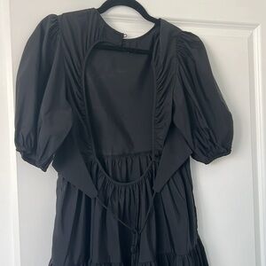 Zara tiered poplin black open back dress