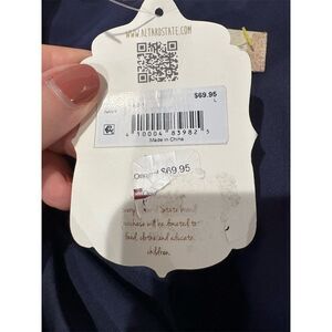 Discover effortless elegance with this Altar'd State large dress, perfect for any casual outing. The navy floral pattern on this sleeveless, short dress adds a touch of whimsy, while the ruffle details bring a playful flair. With a length of approximately 35 inches, it’s ideal for brunch with friends or a relaxed garden party. Fully lined for comfort, this dress ensures you feel as good as you look. Remember, it's new with tags, ready to make its debut in your wardrobe.