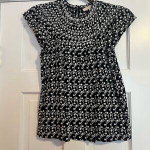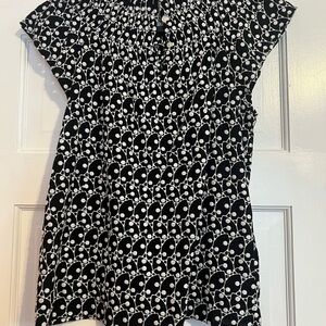 #44 LOFT • BLACK AND WHITE TOP • EMBROIDERED SMOCKED NECK