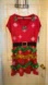 Charming red dress with festive snowflakes. Features green and gold tinsel details. Perfect for holiday celebrations.