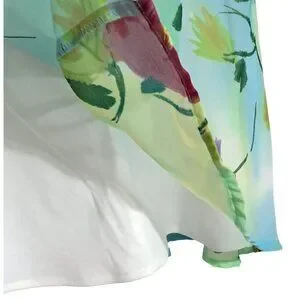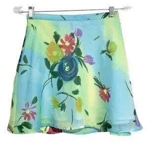This vibrant floral skater skirt offers a flowing silhouette, ideal for professional or casual settings. Its lightweight polyester fabric ensures comfortable wear. One skinny run as shown, otherwise great!