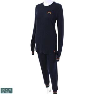 Aviator Nation Rainbow Waffle Thermal Lounge Set Base Layer Navy Pants & Top