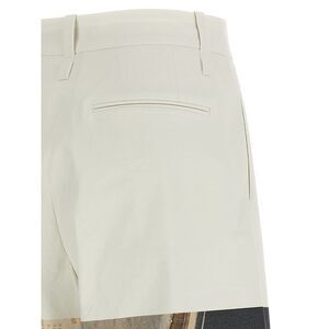 'Street View' cotton blend pants, wide leg style with front print, front button and zip closure, belt loops at the waist, pleats, side pockets.