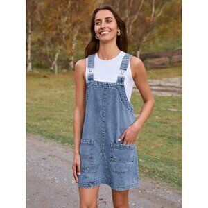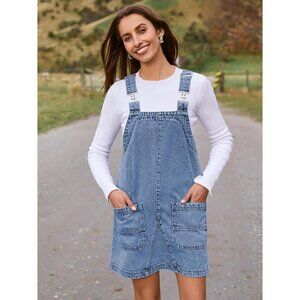 Women's Denim Overalls Light Blue Size M Pockets Adjustable Straps Casual