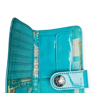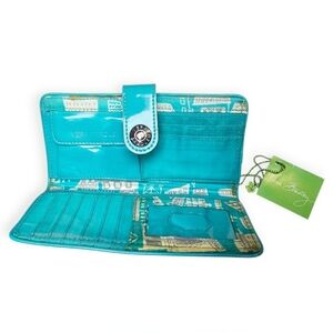 Rare Vera Bradley Quilted Fabric Patent Leather Slim Wallet Tiffany Blue Turquoise
