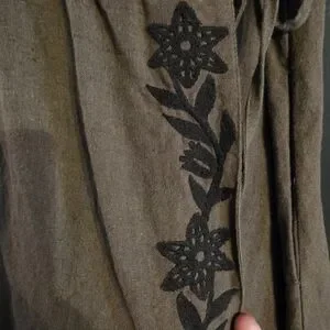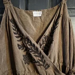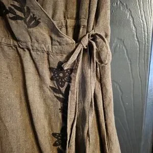 Voriagh Linen Olive Brown Wrap Dress Embroidered