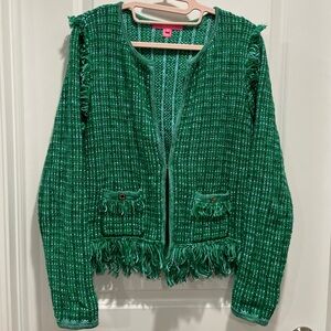 Lilly Pulitzer Simora Blazer Cardigan Green Tweed Jacket Size Large
