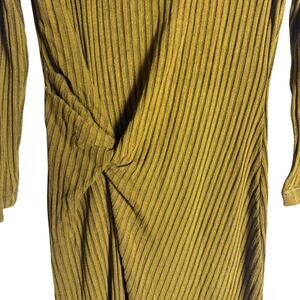 Tanya Taylor Elana Green Brown Ribbed Knit Long Sleeve Knotted Midi Dress Size M