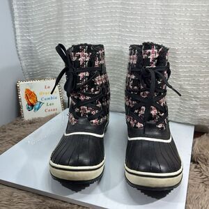 (C) SOREL Tivoli Tweed Winter Snow Boots in Pink and Black Women's size 9