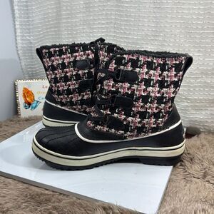 (C) SOREL Tivoli Tweed Winter Snow Boots in Pink and Black Women's size 9 New in perfect condition see photo for details
