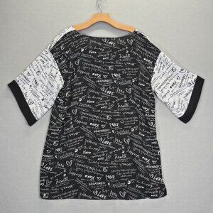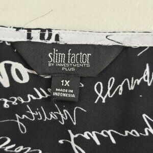 Slim Factor by Investments Womens Top Size 1X Plus Mini Scroll V-Neck Black Whit
