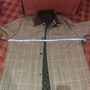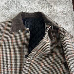 Custom made in London tweed coat with quilted lining and corduroy collar. Dimensions shown in photographs, usually wear an XL. Jacket with padding, similar to a British shooting or field jacket.