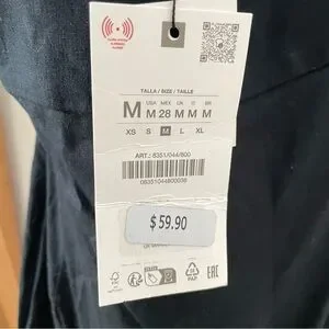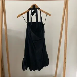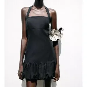 NWT Zara Linen Drop Waist Halter Neck Bubble Hem Mini Dress in Black - M