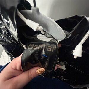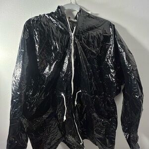 Sleek and shiny black windbreaker. Lightweight and stylish. Ideal for windy days.