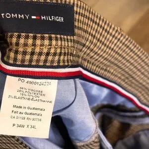Tommy Hilfiger Men's Brown Houndstooth Pants w Stretch 34 x 34 Like New