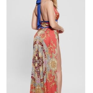 Guess Capucine Satin Feel Halter Neck Open Back Maxi Dress Sz M EUC