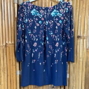 Wearever Collection navy tunic with floral design. Features a relaxed fit and three-quarter sleeves. Gently used pre owned condition