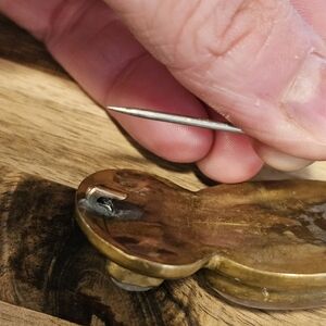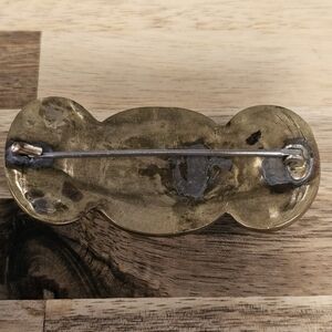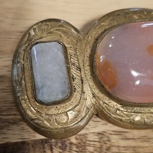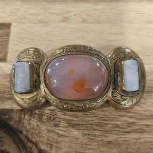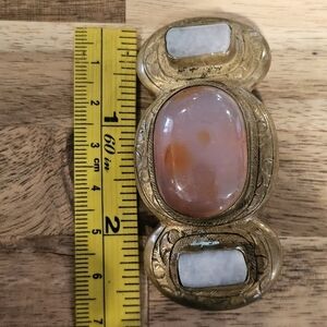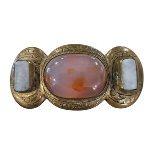 Vintage Etched Brass Stone Large Brooch