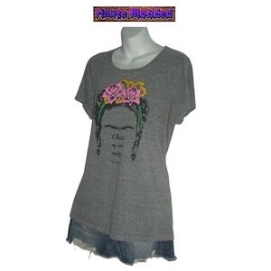 Frida Kahlo Tee Shirt Plus Size Mexican Painter Artist Gray Flowers Sz XXL 2X 2