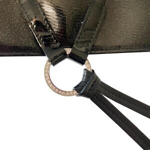 Longchamp Idole Y2K Vintage Black Patent Leather Clutch Silver Ring Tassel