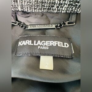 Chic Karl Lagerfeld design. Features monochrome tweed detail. Stylish and modern. Excellent condition. No flaws. Please see photos for details.