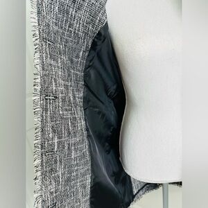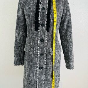 Karl Lagerfeld Paris Monochrome Tweed Fringe Ruffle Coat Size 2
