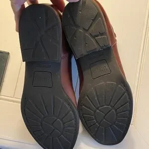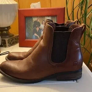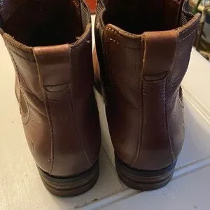 Stylish brown leather ankle boots. Elastic side panels for easy wear. Durable sole for comfort.