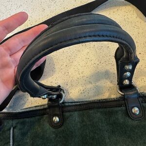 Authentic Juicy Couture Royal Scotty Tote in a rich jungle-green velour. Velour is still soft, and the interior cotton lining has been fully hand-cleaned (no stains or odors). All pockets and hardware are functional.