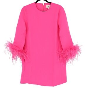 Tuckernuck Women's Hot Pink Feather Mod Ellie Mini Dress Size M Long Sleeve