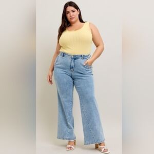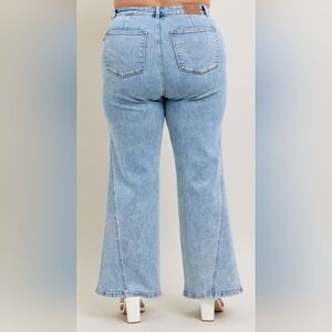 Judy Blue HR Retro Wide Fit Jeans Light Stone Washed Skewed Twisted Inseam NEW