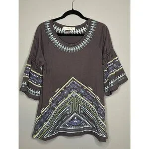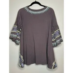 Urban Mangoz Embroidered Geometric Aztec Bell Sleeve Women's Blouse Small