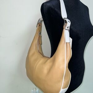Coach Leather Hobo Shoulder Bag – Tan with Cream Trim