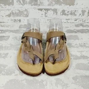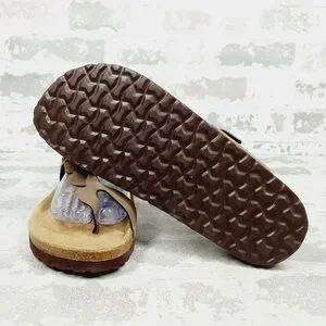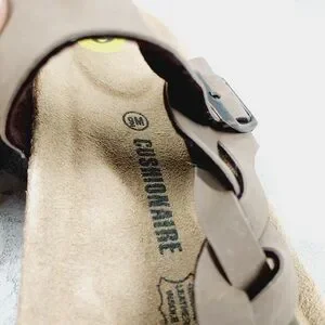 NEW Cushionaire Tan Brown Strappy Buckle Cork Footbed Summer Slide Sandals K28