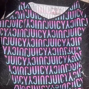 Bold shorts with Juicy Couture branding. Features black, pink, and blue hues. Comes with sports underwear and bra