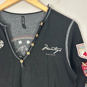NEW Alp N Rock Black Henley Long Sleeve Top Embroidered Size Medium Women's