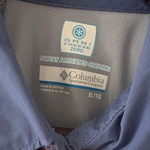 Brand new blue (periwinkle-ish) with light gray side panels Columbia Omni Freeze Zero PFG long sleeve shirt with convertible sleeves, UPF 50 sun protection and sweat activated cooling technology. Ideal for fishing and outdoor activities, womens size XL