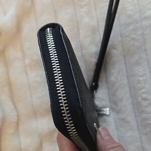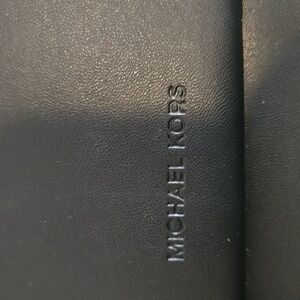 Stylish black wristlet wallet by Michael Kors. Features a sleek design with a convenient wrist strap.