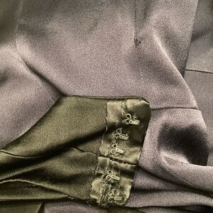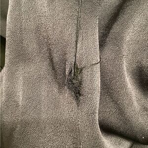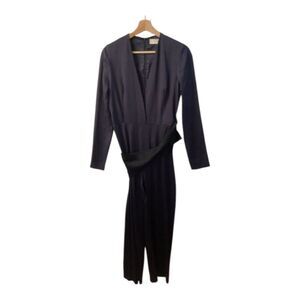 Preowned and in good condition; minir tiny tear on the back of the zip and another spot, belt string and snap buttons. mainy the whole jumpsuit is wearable and in excellent condition minus those blemishes. See pictures.