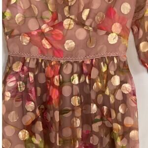 Marchesa Notte V-Neck Bubble Sleeve Polka Dot Cocktail Dress Blush Size 4