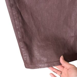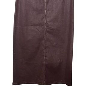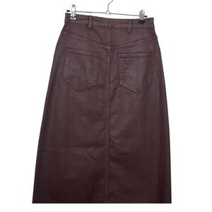 This Anthropologie Pilcro Madi midi skirt in oxblood features a sleek front slit and denim-inspired structure for a bold, flattering silhouette.
